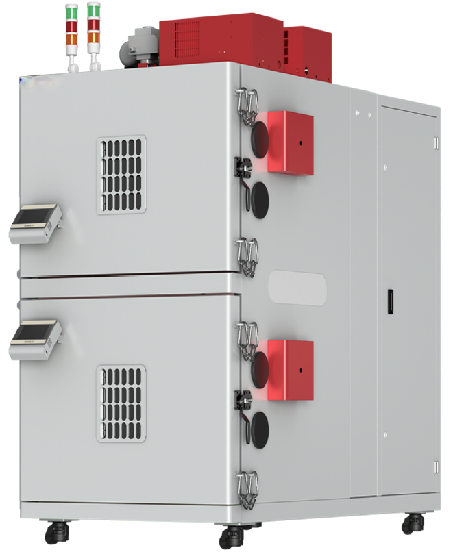 一、产品概述(1)3适配电池EUCAR等级:MAX L6级;(2)电结构形式:单层/双层;定制;(3)单温度范围:-40℃~+120℃;(4)湿度范围:10%~98%RH;(5)均温性:风场数值模拟优化,温度均匀性佳。二、产品特点(1)安全防护:泄压阀、防爆链、机械门锁+电磁门锁、强排系统、快速除湿系统;(2)消防系统: 烟雾检测、气体检测 (HC、CO、H2) 、超温保护,CO2或N2自动灭火系统;(3)安全PLC:手动/自动灭火、远程灭火、独立报警断电,支持与电源柜联动;