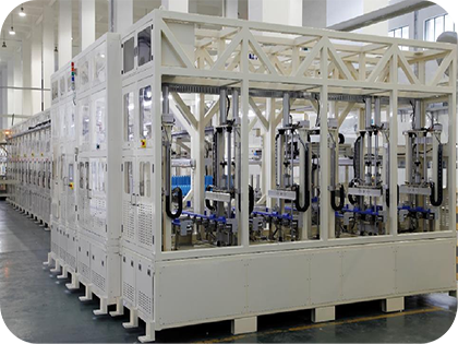 LIP-200AHTP 高性能全自动机器人上下料夹具机系统,主要用于固态电池的热压化成及分容,在高压加热状态下进行电池化成,压力采用可调的闭环控制,优化化成效果,缩减电池制作周期;分容治具采用恒温控制,温度一致性达到±2 ℃,解决了电池在分容过程中散热不均的问题。采用高压、恒温充放电模式,可提高分容效率,减少电池搬运次数,提高电池生产的合格率质。